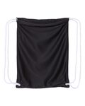 Liberty Bags Jersey Mesh Drawstring Backpack. White with DUROcord drawstring. 100% polyester breathable fabric. Mesh fabric simulates sports uniforms. Can be used as a laundry bag or pack. Non-branded label/tag. 17.5 x 13.5.